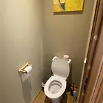 La Gîte indépendant avec jardin et proche Belgique - FR-1-510-231 dispone de un cuarto de baño con una ducha y una lavadora. Los huéspedes también pueden disfrutar de la comodidad de los secadores de pelo.
